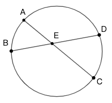 定理: 如果圆内有两条弦相交,则每条弦的两段构成的矩形面积相等(即如图 10, \(AE\cdot EC=BE\cdot ED\))。