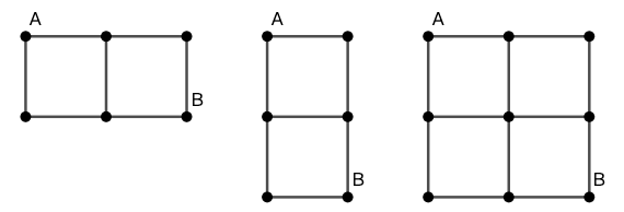在图 中,从 A 出发走到 B ,只能沿线向下或向右运动。问有多少种走法?