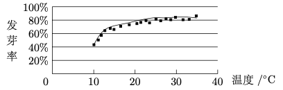 由此散点图,在 \(10\circ C\)至 \(40\circ C\) 之间,下面四个回归方程类型中最适宜作为发芽率 \(y\) 和温度 \(x\) 的回归方程类型的是: