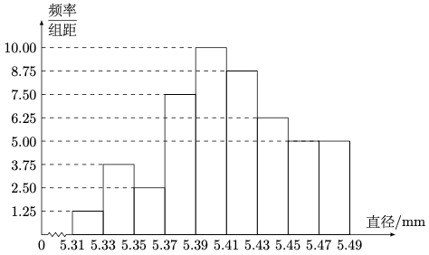问题:27 从一批零件中抽取 \(80\) 个, 测量其直径 (单位: \(mm\)), 将所得数据分为 \(9\) 组: \([5.31,5.33), [5.33,5.35), \cdots, [5.45,5.47), [5.47,5.49]\), 并整理得到如下 频率分布直方图, 则在被抽取的零件中, 直径落在区间 [5.43, 5.47) 内的个数为
