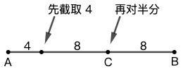 示例: 在给定线段 \(AB\) 上找一点 \(C\) ,使得\(BC=\dfrac{1}{3}AC\) 。