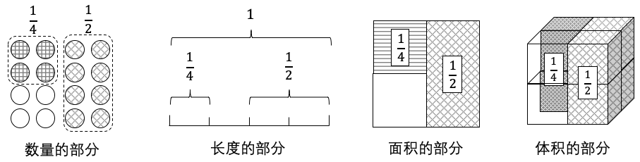 示例: 使用“分整体为部分”的观点计算 \(\dfrac{1}{3}\times\dfrac{1}{4}\) 。