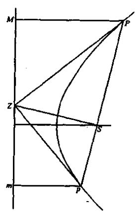 示例: 抛物线在点 \(P\) 的切线交准线于 \(Z\) ,焦点是 \(Z\) ,\(P\) 在准线的投影为 \(M\) 。那么 \(\angle{PSZ}\) 是直角,且 \(PZ\) 平分 \(\angle{SPM}\) 。