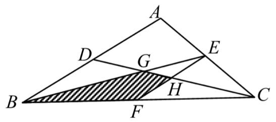 (1)求 \(CD\) ,\(BE\) , \(EF\) 被 \(G,H\) 所分的比例。