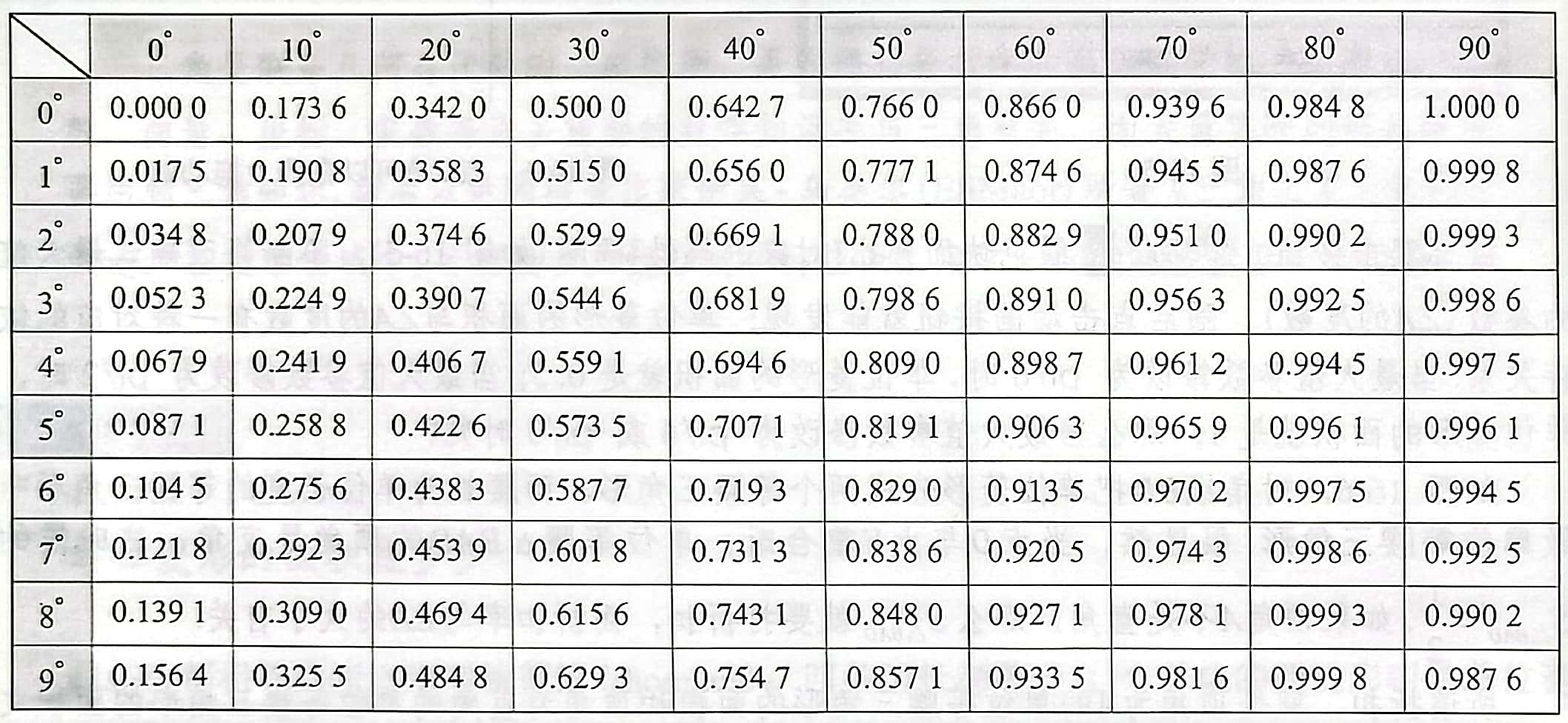 示例: 有了上述性质,再配合先前通过几何方法计算得到的 \(\sin15^\circ\) ,可以得到表 所示三角函数表。